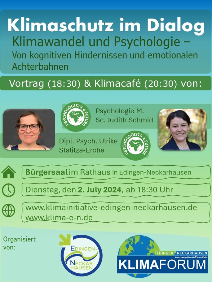 Ankündigung unser Veranstaltung Klimaschutz und Psychologie